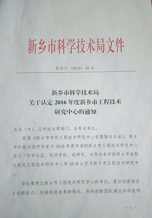 新鄉市科學技術局——關于認定2016年度新鄉市工程技術研究中心的通知